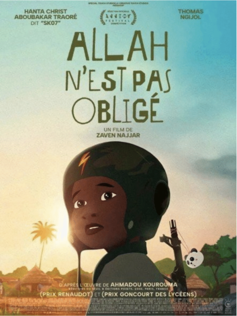 Adapté du roman d’Ahmadou Kourouma, Allah n’est pas obligé, prix Renaudot et Goncourt des lycéens en 2000, le premier long métrage de Zaven Najjar en conserve la dimension extrêmement orale. C’est donc accompagné de la voix du personnage principal, Birahima, jeune garçon ivoirien devenu soldat pour survivre, que l’on plonge dans les conflits armés d’Afrique de l’Ouest, du Liberia à la Sierra Leone. Cela permet au film de jouer à la fois la carte d’une certaine naïveté – l’enfant racontant les événements à sa hauteur, et dans une langue particulièrement fleurie – et d’une crudité sans filtre face